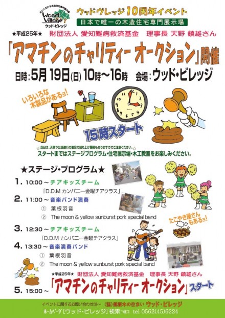 19日はウッドビレッジを会場として「アマチンのチャリティーオークション」を開催いたします。