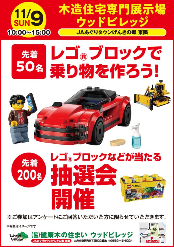 2025 11/9日(日) 「レゴブロックで乗り物を作ろう!」イベント開催のお知らせ